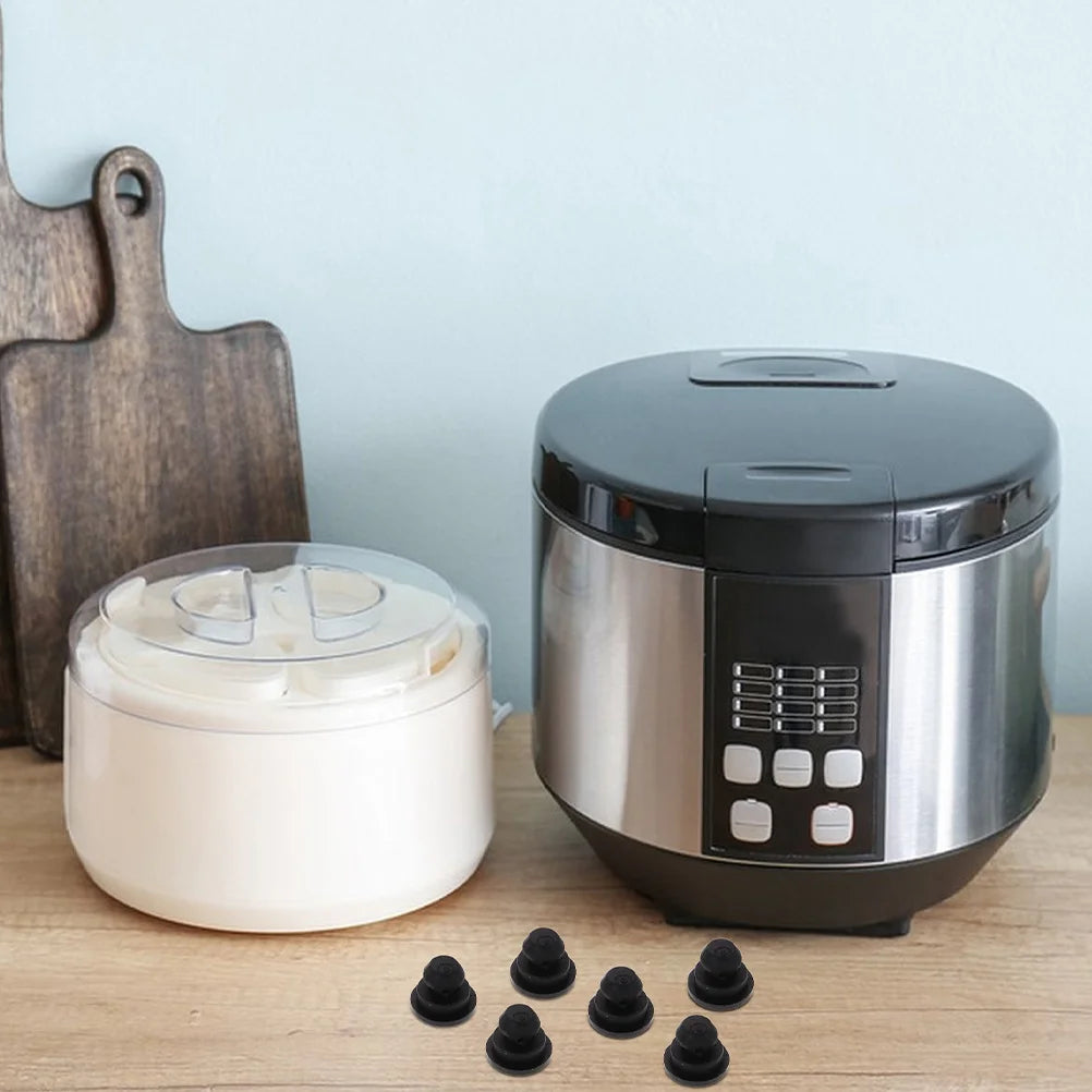 Ensure your rice cooker or electric pressure cooker stays in place with these durable rubber feet. They are designed to provide a stable, non-slip base that protects your countertops and tables from heat and scratches. Simply insert the feet into the designated slots on the bottom of your appliance for a secure and stable fit. rice cooker rubber feet