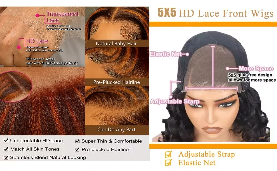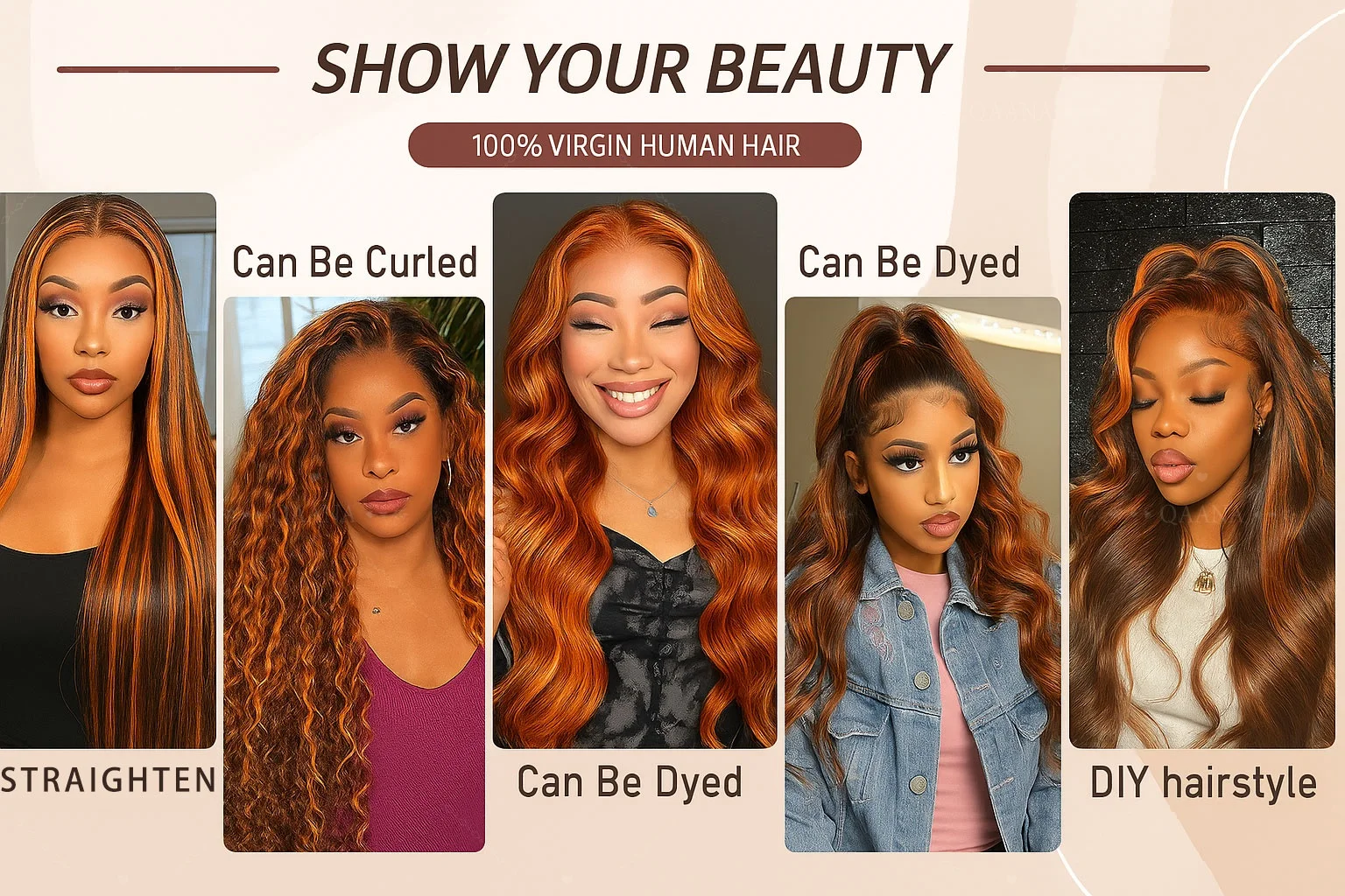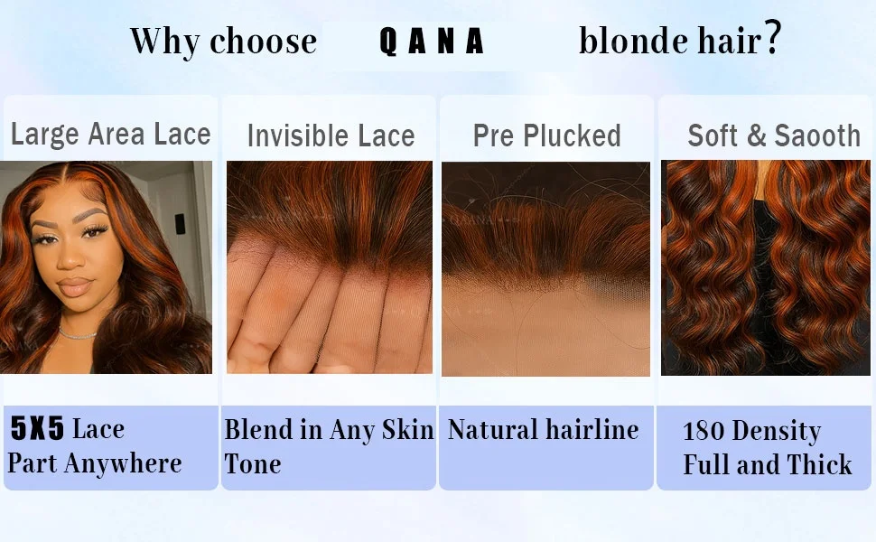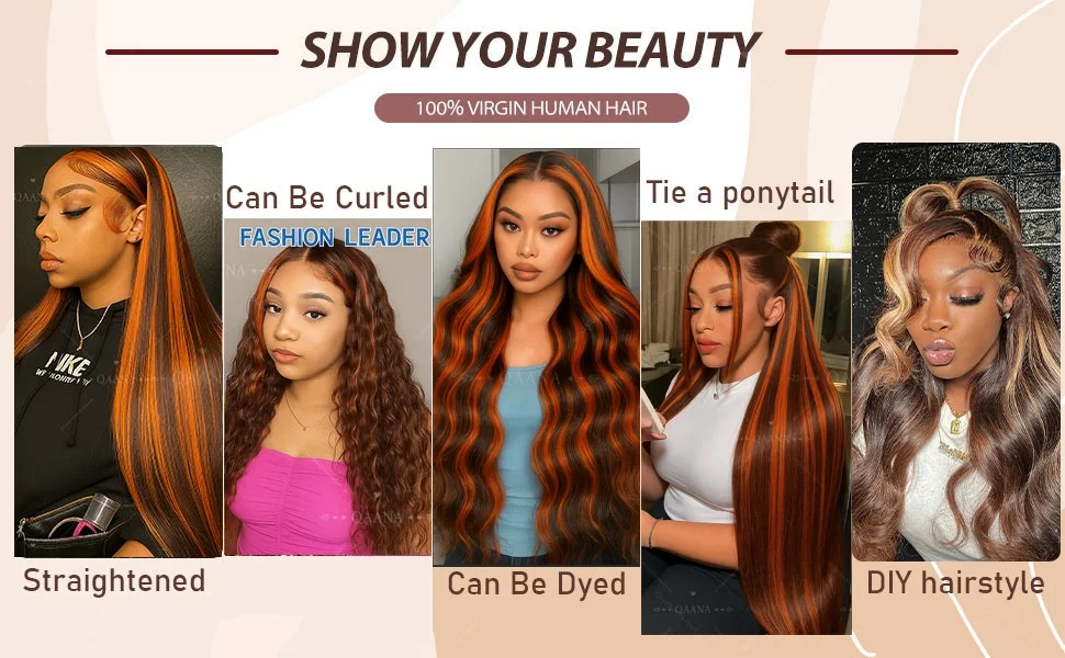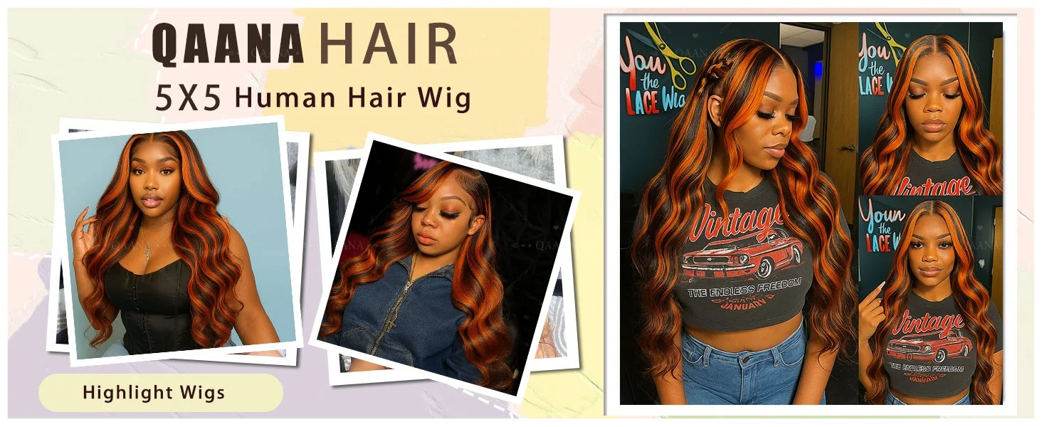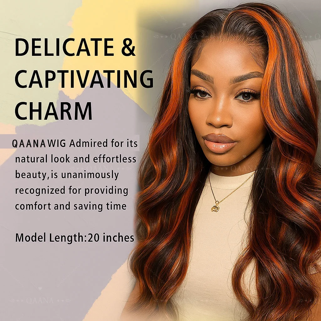 Brown Ginger Highlight Wigs Human Hair 5x5 Lace Frontal Body Wave Glueless Pre Cut Ombre Ginger Colored Hair Wigs For Women