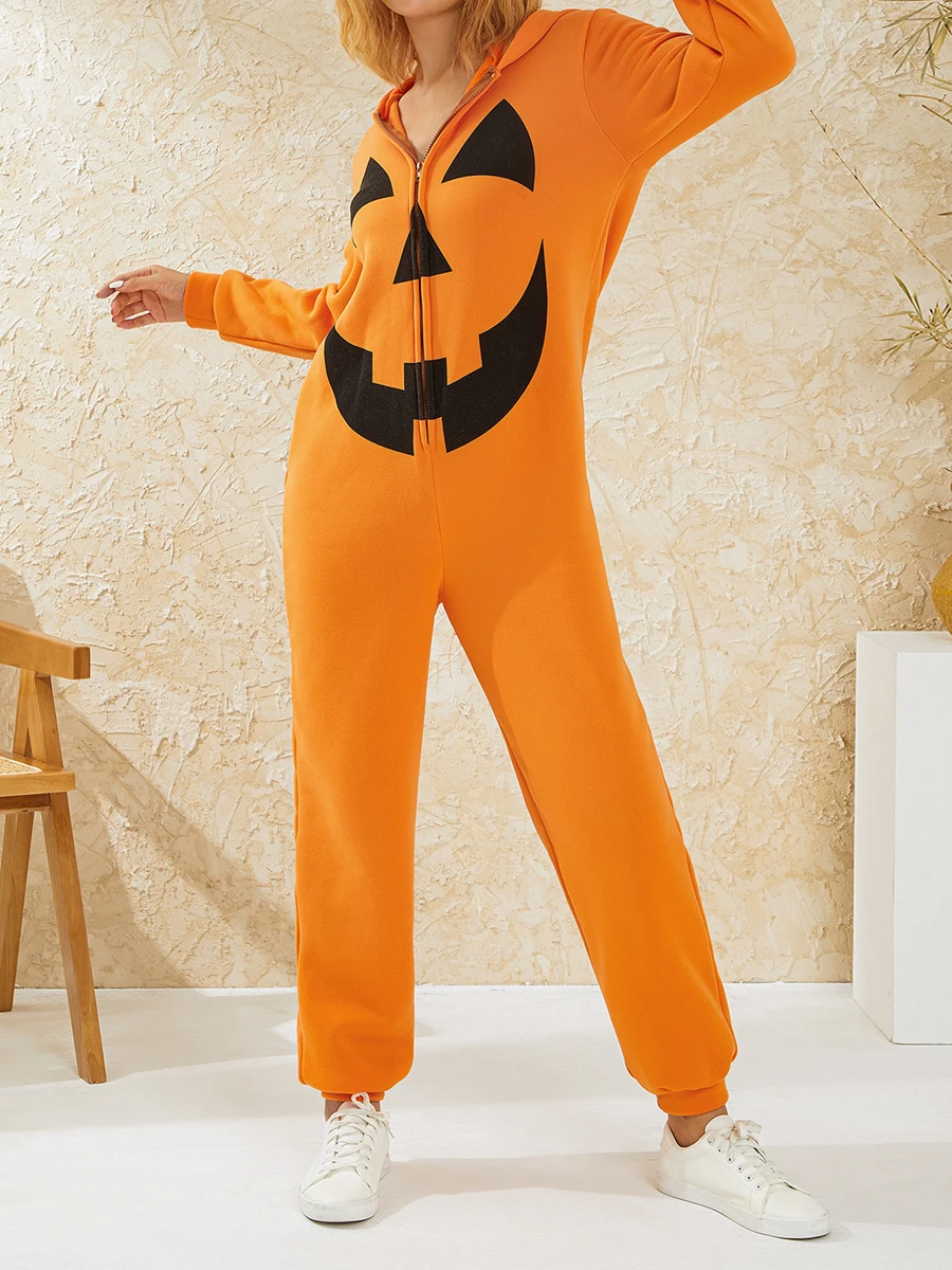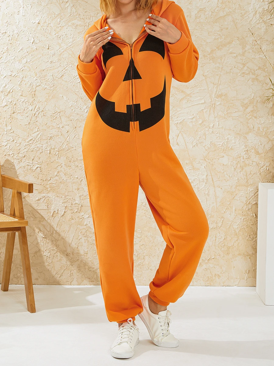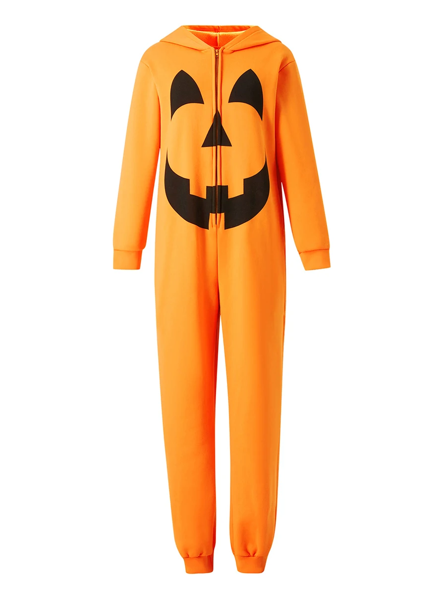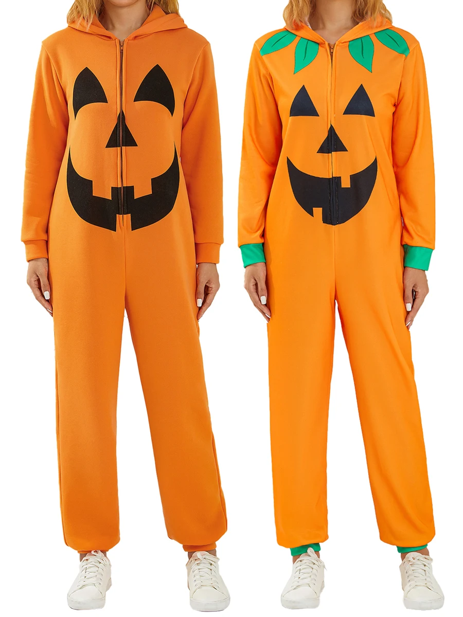 Cute Matching Halloween Pajamas Set with Fun Prints and Zipper Closure for Couples - Cozy Hooded Romper Sleepwear for
