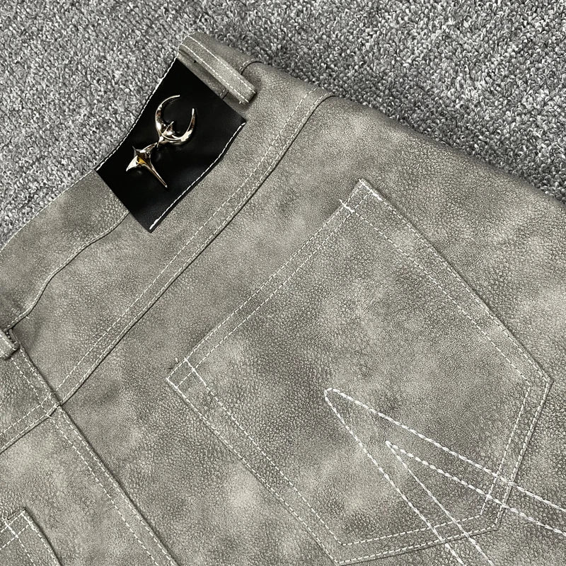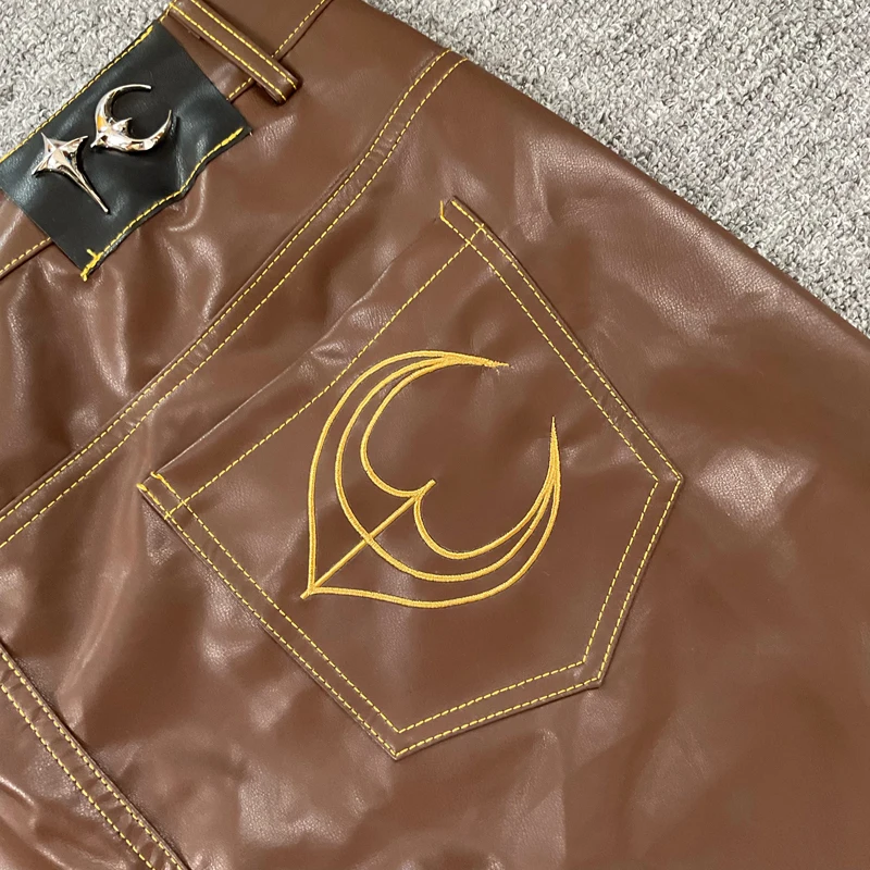 High Street Trend THUG CLUB Pu Leather Pants Hip Hop Men's Loose Embroidery Logo Straight-leg Trousers Thug Club Casual Pants