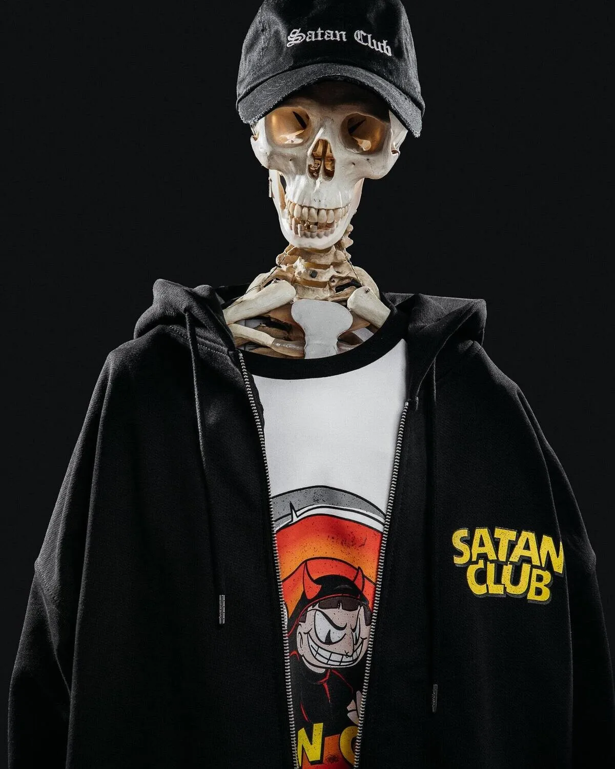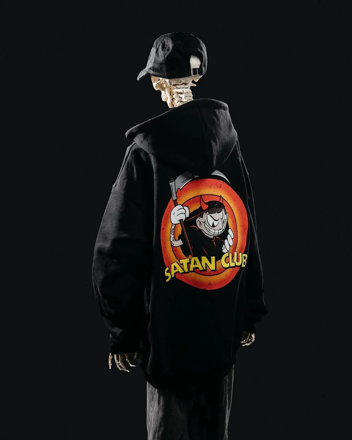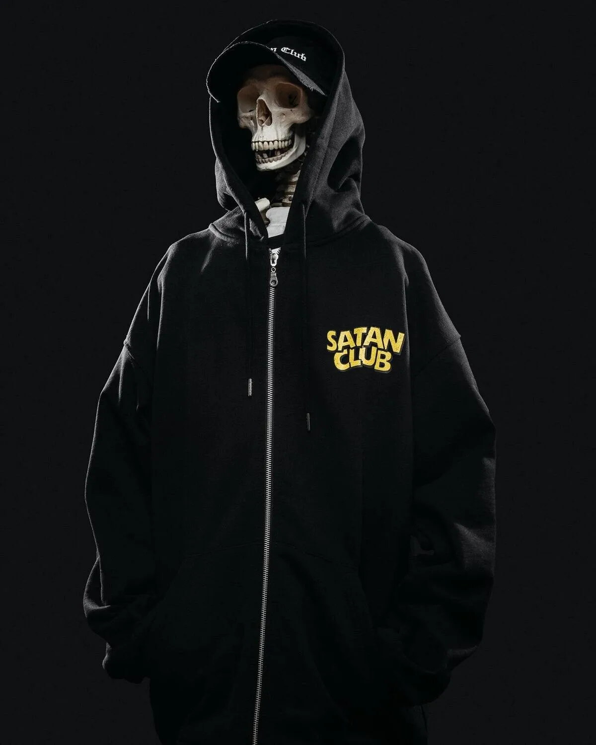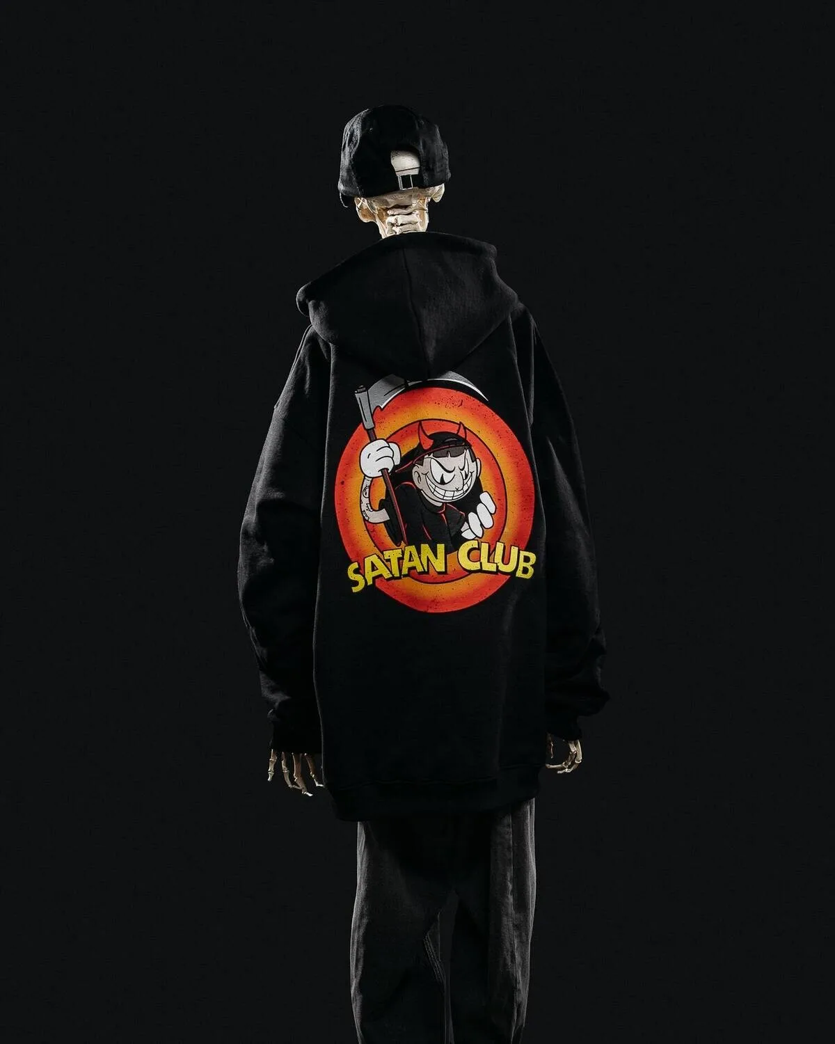 Hip Hop Zipper Men Hoodie Satan Club Graphic Zip Up Hooded Pullover Sweatshirts Winter Streetwear Jacket Y2K Coat Clothing Goth