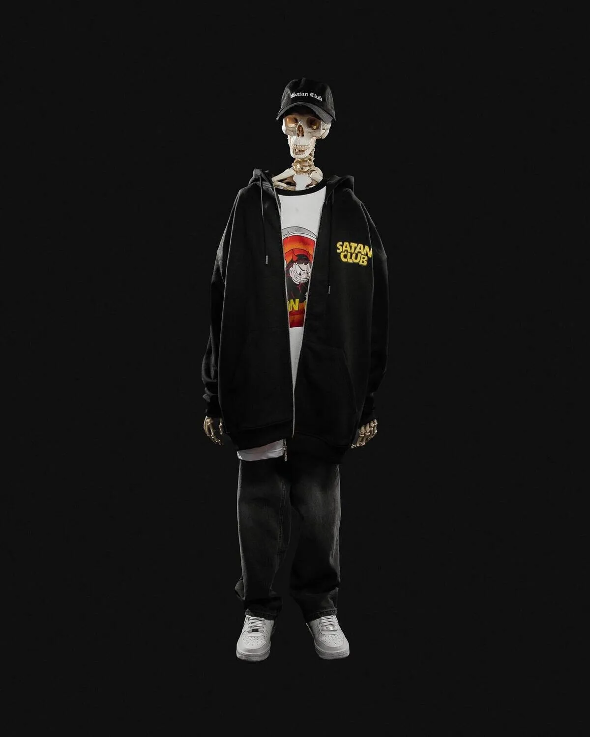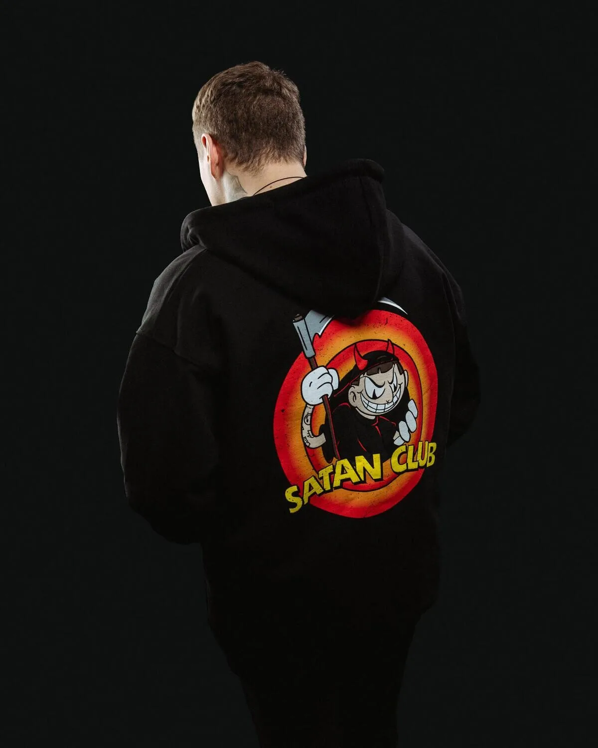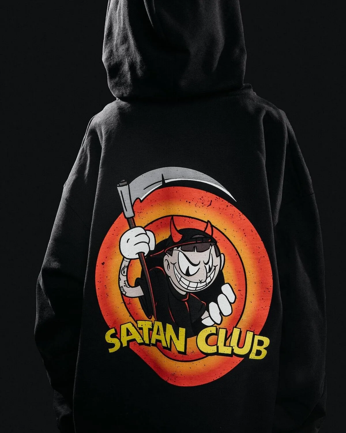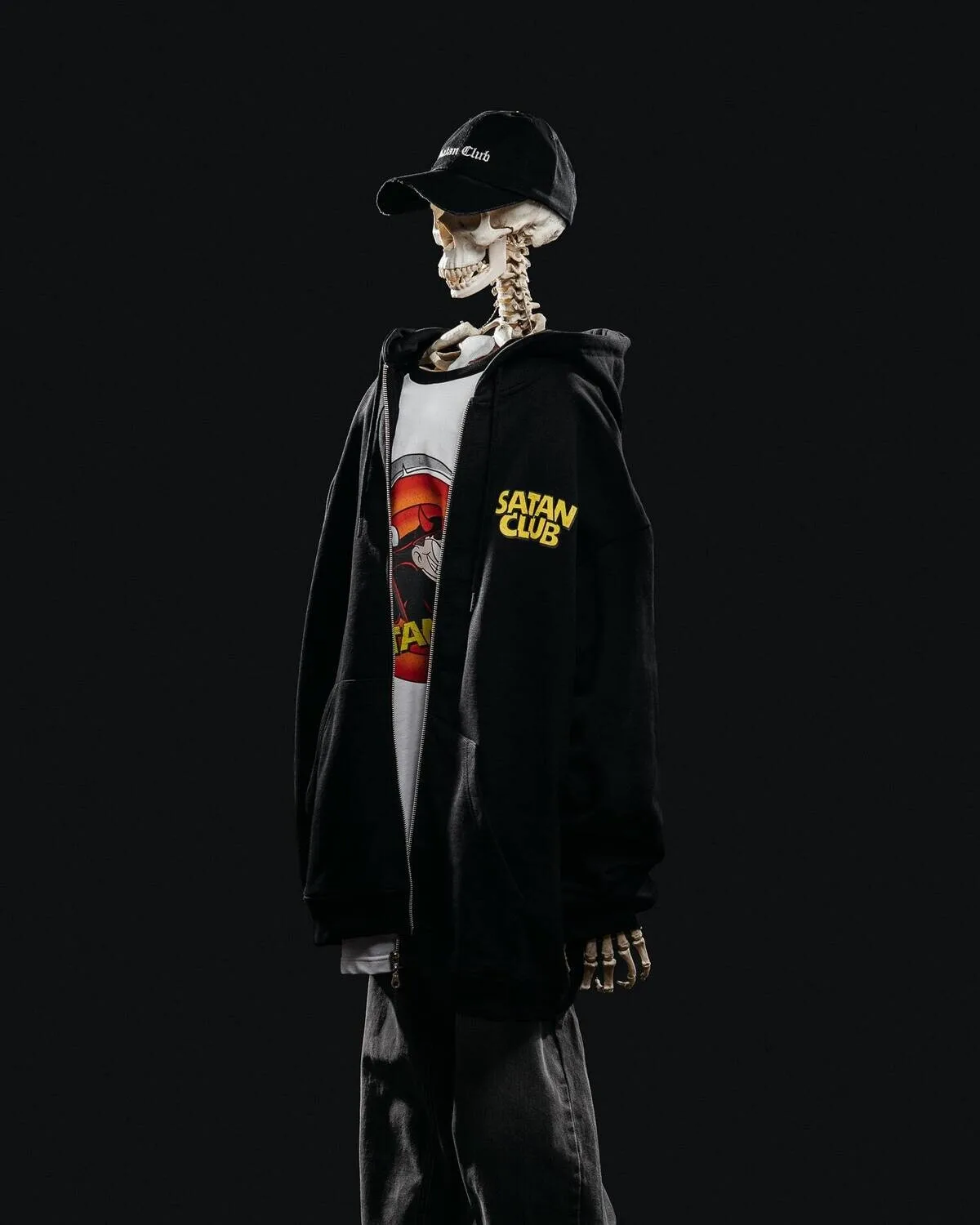 Hip Hop Zipper Men Hoodie Satan Club Graphic Zip Up Hooded Pullover Sweatshirts Winter Streetwear Jacket Y2K Coat Clothing Goth