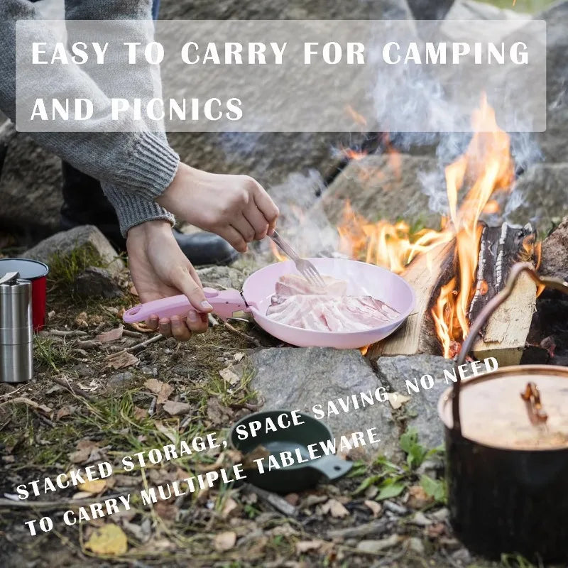 Set includes: 1x 8-inch frying pan, 1x 10-inch frying pan, 1x 2.5QT saucepan, 1x detachable handle, 1x lid (suitable for 8-inch frying pans and saucepan)