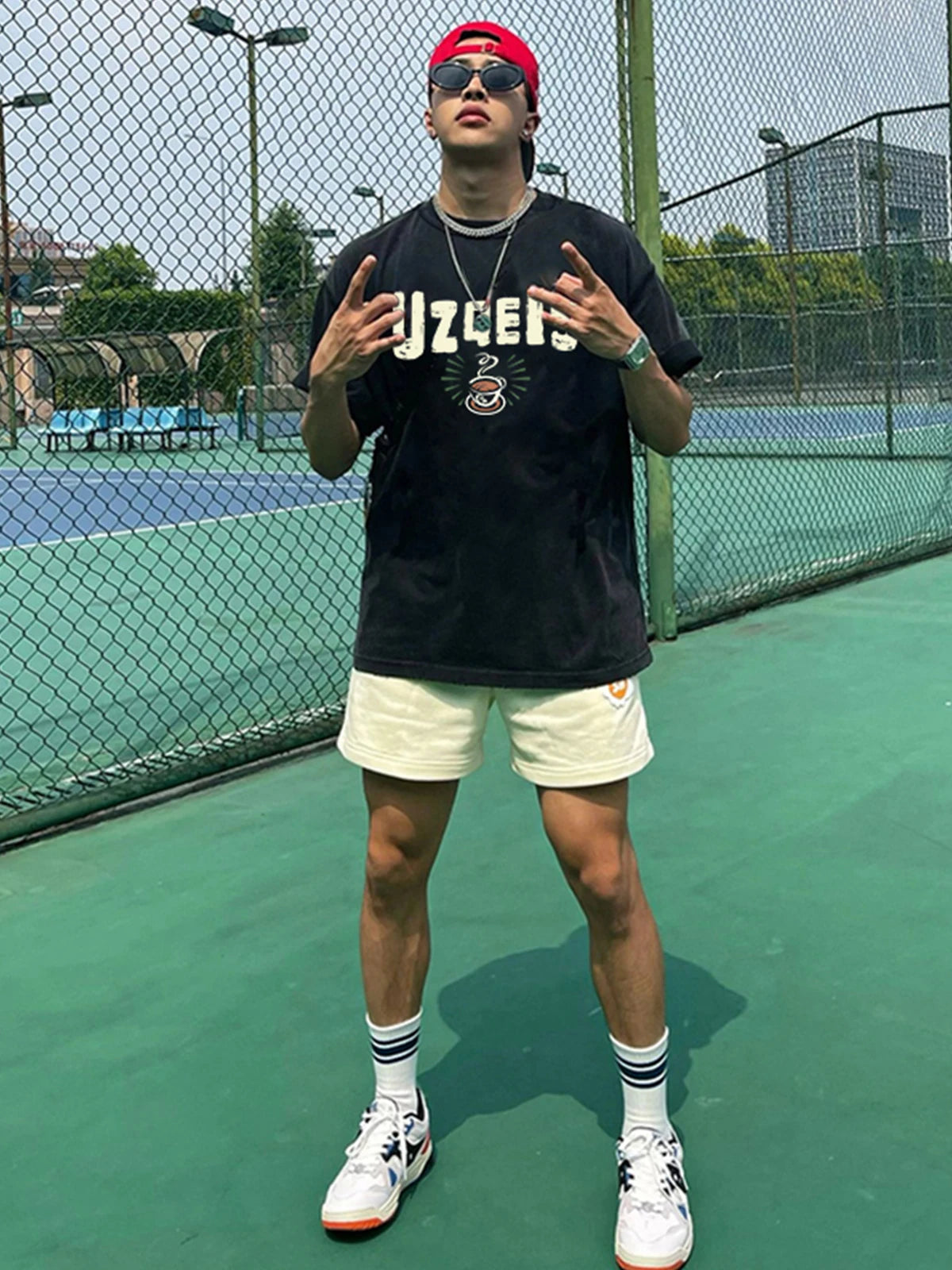 Pure Cotton Casual Short-sleeved T-shirt Men European and American Hip-hop Printing American Men's Retro Street Top Trendy Brand