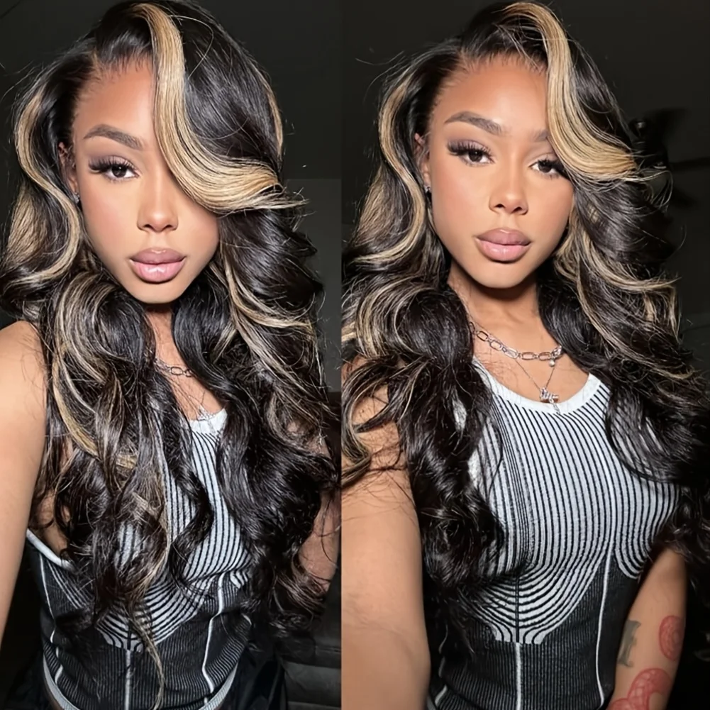 Transparent 13x4 Lace Frontal Body Wave Human Hair Wigs Brown Stripe Highlights Closure Lace Wig Pre Plucked for Women