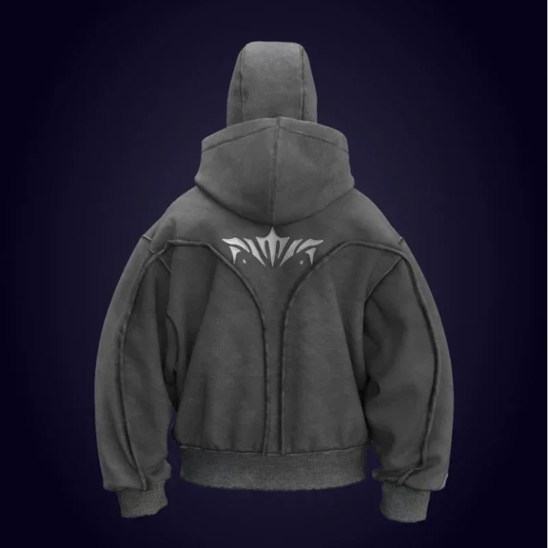 Harajuku Zip up Hoodie Double Hat Embroidered high quality Heavyweight Sweatshirt